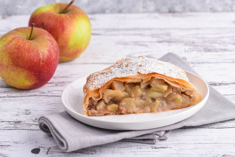Ein Apfelstrudel, ein typisch österreichischer Apfelkuchen.
