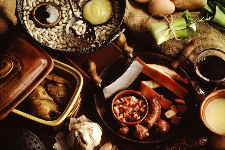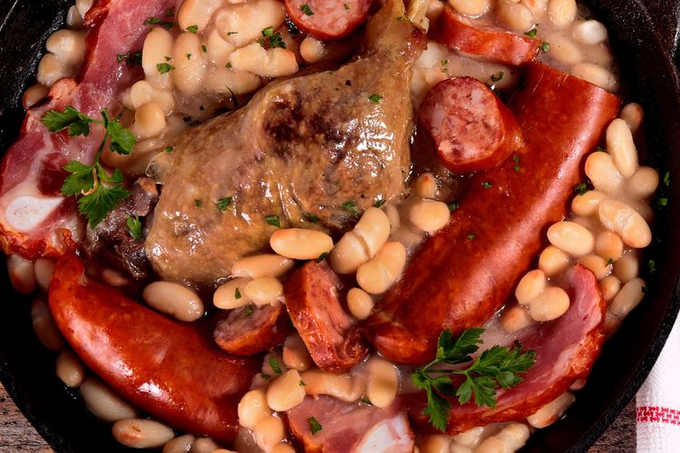 Hier ist das Cassoulet von Carcassonne eine Institution, auch wenn es nicht mehr und nicht weniger als eine Variante des Cassoulet von Castelnaudary ist. Dieses Familiengericht wird zu Hause in einer Terrakotta-Kasserolle aus Castelnaudary zubereitet, in der Lingots - oder Mogettes du Lauragais - großzügige weiße Bohnen, die an Kokosnüsse erinnern, Schweinefleisch (Schulter, Haxe, Lende, Wurst, Schinken), Hammelkeule und rotes Rebhuhnfleisch, das Markenzeichen der Region, je nach Saison auf einem großzügigen Bett aus Schmalz oder Speckschwarte geschmort werden. Und als Krönung gibt es feine Toulouser Würste.