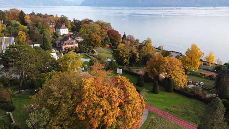 Blick auf den Genfer See und den Denantou-Park
