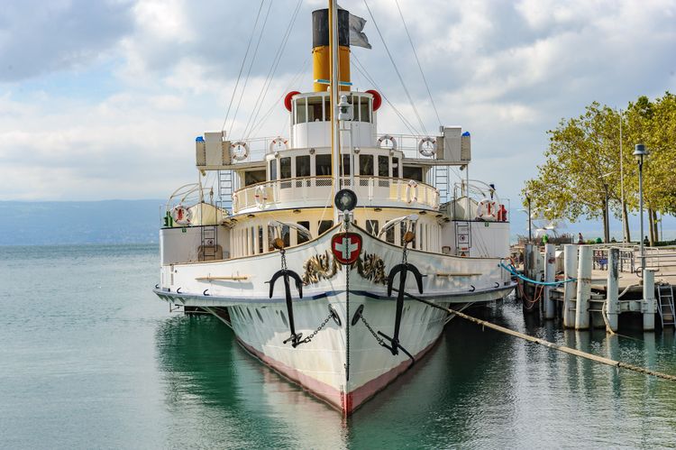 Die Schaufelradschiffe, die über das Wasser gleiten, versetzen uns in die Belle Epoque. Einige Schiffe der CGN aus den Jahren 1904 bis 1927 wurden komplett restauriert. Heute heißen sie Touristen an Bord willkommen, um eine bukolische Fahrt zu unternehmen. Von den enkaustischen Decks aus kann man die Weinberge des Lavaux, die wunderschöne Landschaft zwischen Bergen und Städten, das Schloss Chillon in der Ferne sowie die Städte Montreux und Vevey entdecken. Die gesamte Tour dauert etwa 40 Minuten. Die Schiffsgesellschaft bietet eine Vielzahl von Kreuzfahrten und Erlebnissen an (Essen an Bord, die Heritage Tour, ein Abend auf hoher See).