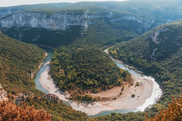 Am Eingang der Ardèche-Schlucht überrascht der Pont d'Arc mit seiner geologischen Form. Dieser natürliche Bogen, der mindestens 124 000 Jahre alt ist, wurde von dem darunter fließenden Fluss ausgehöhlt. Im Sommer ein unglaublicher Spot für Kanufahrer, die das Glück haben, darunter durchzufahren und das Spektakel zu genießen, indem sie nach oben blicken. Viele lassen ihr Kanu auf der Seite liegen, um ein kleines Bad zu genießen und mit einem Erinnerungsfoto nach Hause zu gehen.
