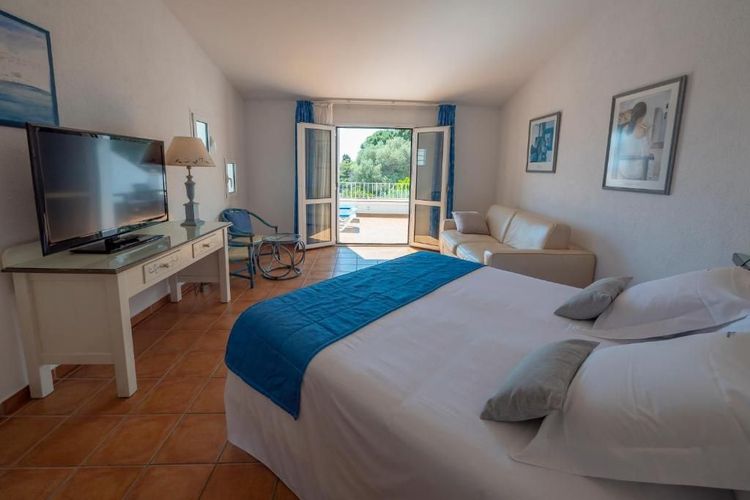 Genießen Sie den Sonnenaufgang über dem Mittelmeer von der Terrasse Ihres Zimmers aus, bevor Sie im Schatten der Pinienbäume frühstücken und sich dann zum ersten Bad an den Strand begeben, der nur einen Steinwurf entfernt ist... Ein idyllisches Bild!