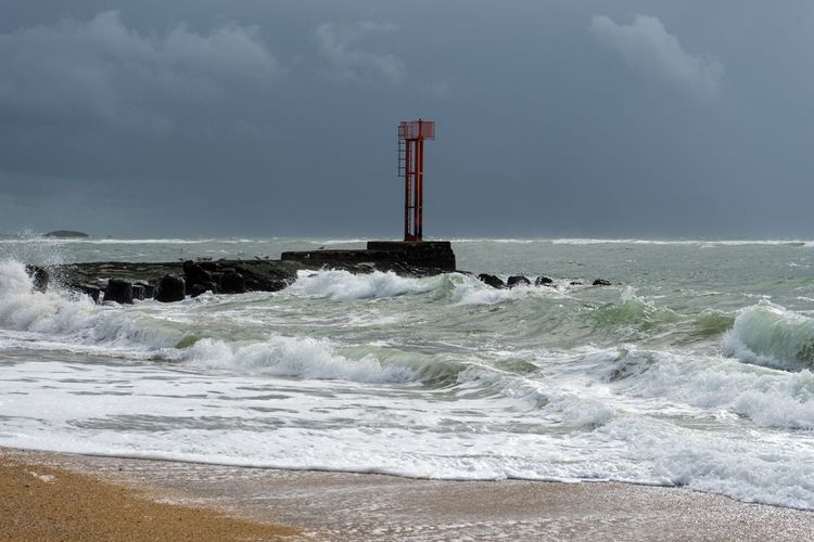 Beginnen wir am Anfang. Am Eingang des Ria d'Etel befindet sich die sehr berühmte Barre d'Etel, die von Generationen von Seeleuten gefürchtet wird. Es handelt sich um eine Sandbank unter dem Meeresspiegel, die sich bei Ebbe und Flut bildet und sich mit den Winden und Strömungen verschiebt. Das Meer, das sich auf seiner gesamten Länge daran bricht, sorgt für ein atemberaubendes Naturschauspiel, macht die Bar aber manchmal für Schiffe unpassierbar. Der Ort ist ein wahrer Alptraum für Seefahrer und berichtet von dramatischen Schiffbrüchen, wie dem des Bootes von Alain Bompard im Jahr 1958, bei dem fünf Menschen ums Leben kamen.