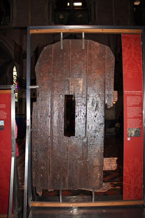 Diese Tür erzählt eine recht merkwürdige Geschichte. Nicht umsonst scheint sie in schlechtem Zustand zu sein, mit einem klaffenden Loch in ihrer Mitte. Durch dieses Loch reichten sich die beiden Protagonisten des Krieges um die Macht die Hand, um den Frieden wiederherzustellen - jeder stolzer als der andere.