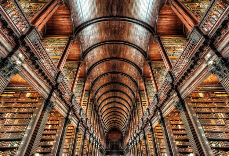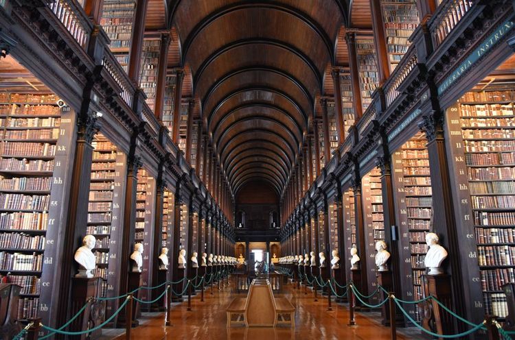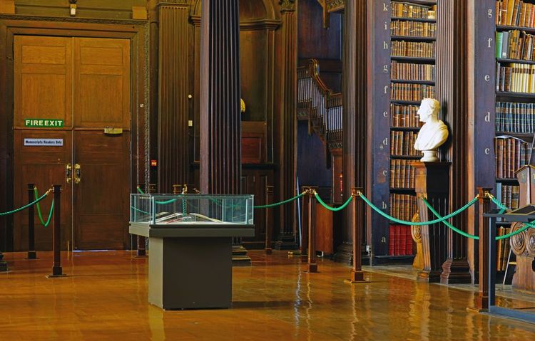 Daher wird sie in einer Umgebung aufbewahrt, die ebenso einzigartig ist wie sie selbst: Die Alte Bibliothek des Trinity College, im Herzen der Universität. Dies ist die größte Bibliothek Irlands. Die meisten Besucher sind von ihrer Pracht beeindruckt: riesige Regale mit alten Büchern, Leitern und Büsten großer Denker, die jede Abteilung bewachen.
